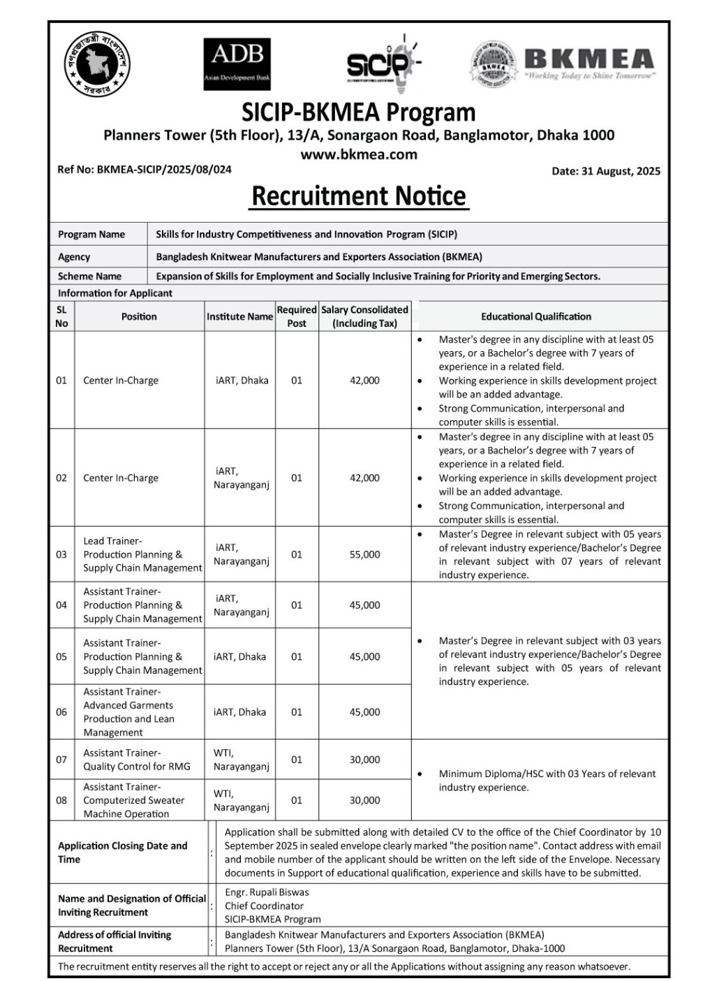 Recruitment Circular for SICIP-BKMEA Program | 31-Aug-2025 |